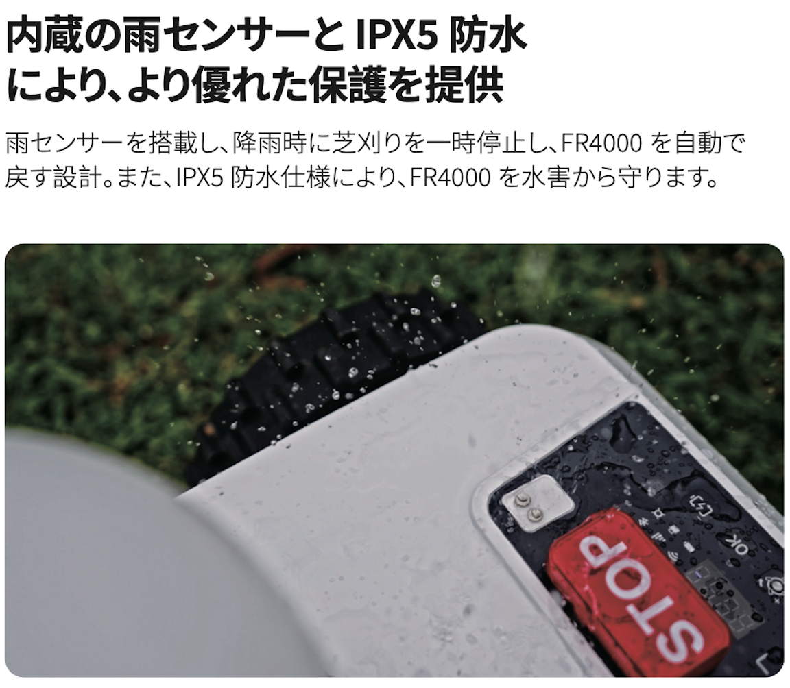 - IPX6防水設計:雨天稼働/露草処理も問題なし